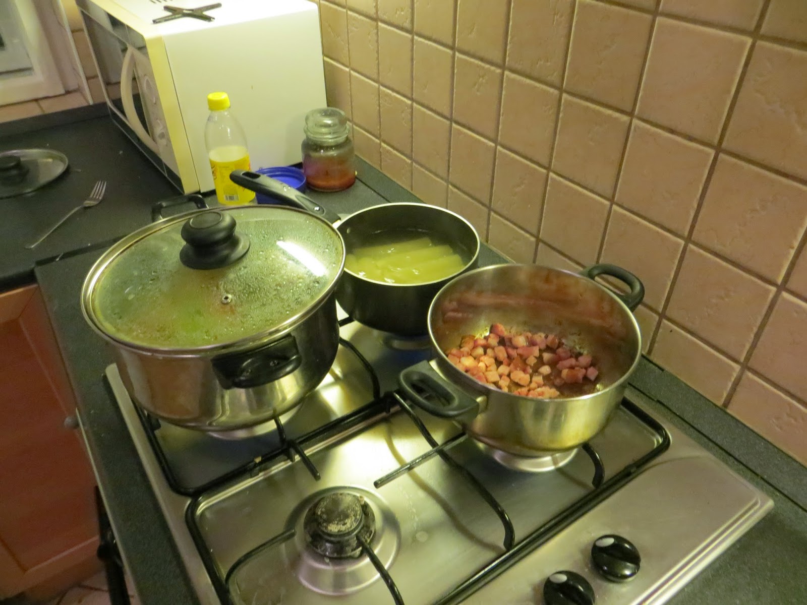 These are mostly in chronological order but some of the meals I didn’t take pictures of, so this is what I got. To start, the second week I joined (Maia and Jon and Neal had cooked the week before that) we made bean casserole. It had this amazing filling that none of us have successfully re-created since, but it smelled divine:
