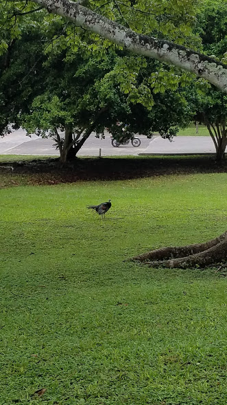 As we walked through the complex we encountered (mostly we heard) the howler monkeys clambering through the tree tops, stopping tosay hello. And twice we were visited by a passel of coatimundi, which were quite fun to watch, and some even had their babies with them. But the only animal I have a picture of were the resident turkeys that decorated the lawn of the restaurant.